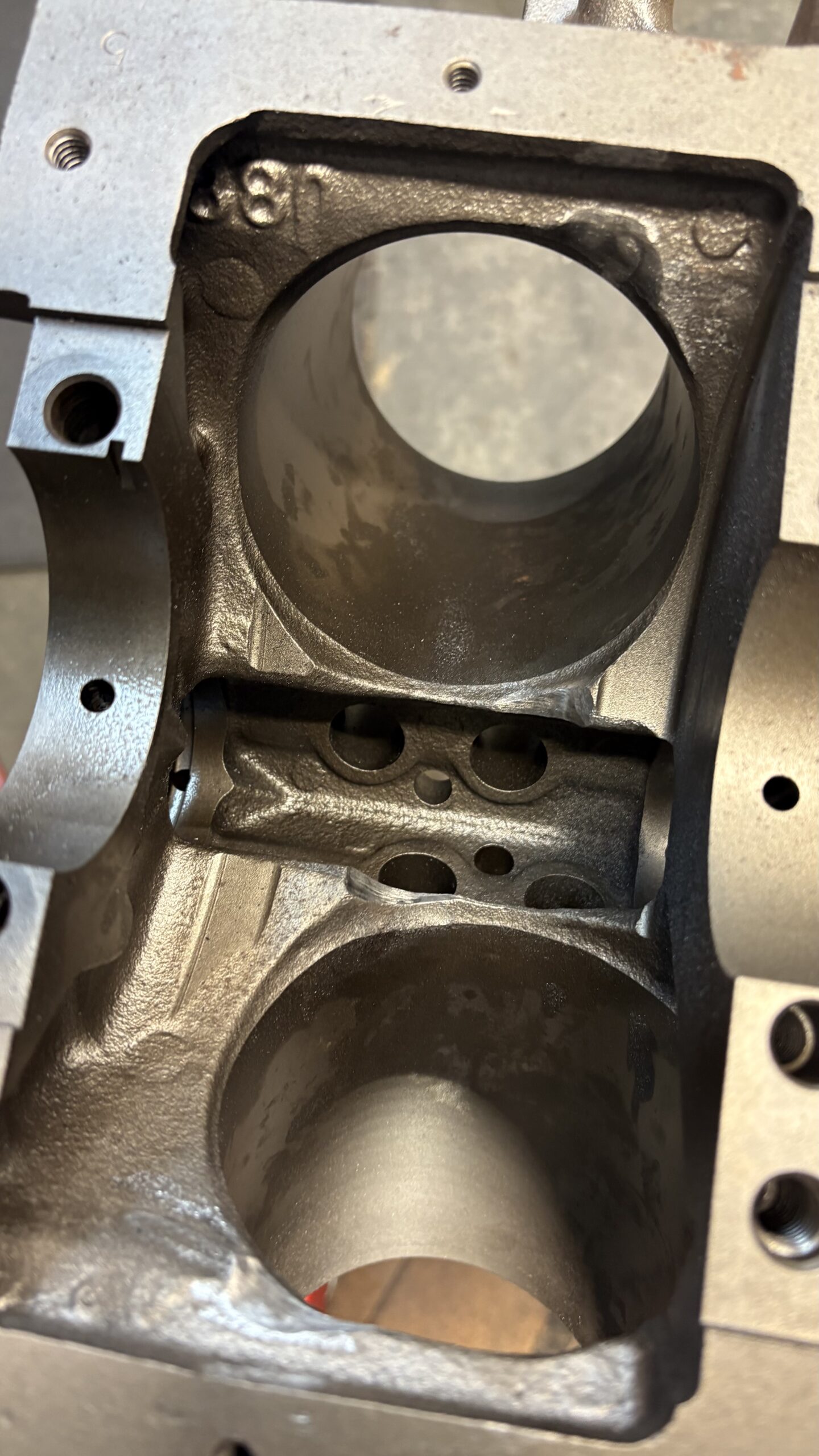The bottom of the cylinders were radius cut to clear the longer 3.75″ crankshaft stroke