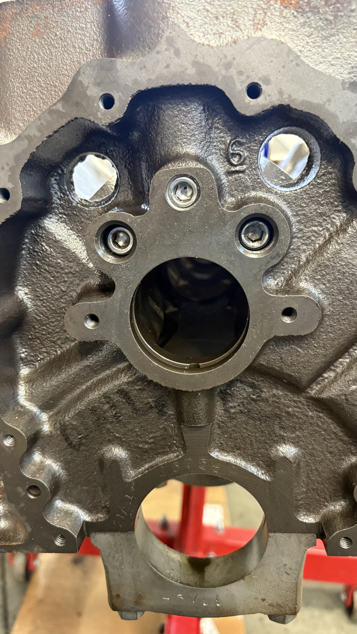 You can tell it’s a 396 block by the intake valve reliefs machined into the deck