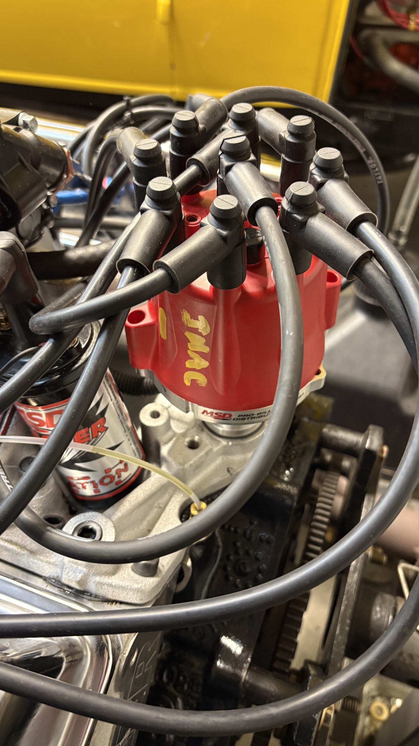 The HEI distributor was recurved to have 14 degrees of timing at idle and 38 degrees of timing at 3800 RPM