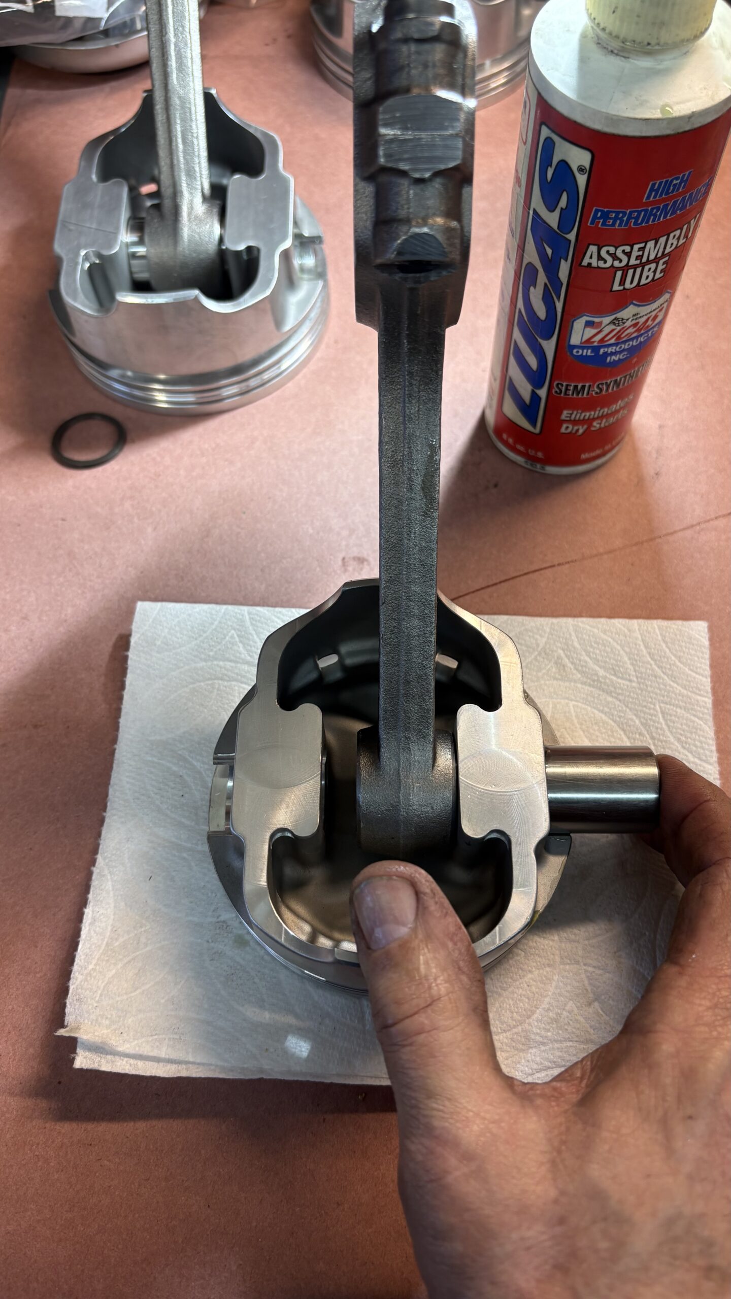 The bottom of the cylinder bores were sanded with emery cloth to eliminate the sharp edge to reduce scuffing of the piston skirts