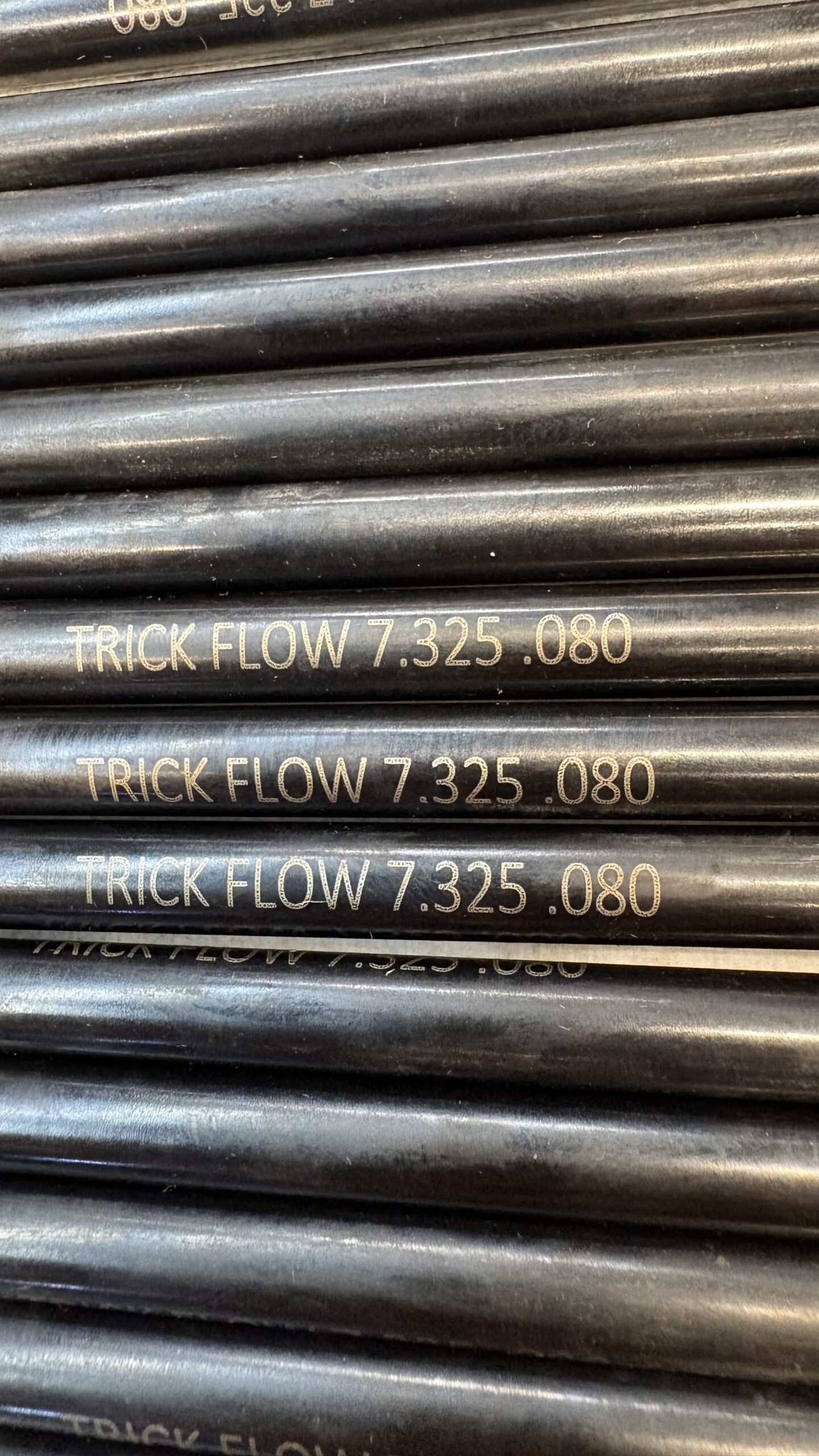 Howard cams 110265-12s hydraulic roller camshaft, LS7 morel roller lifters, custom length 7.325″ Trickflow push rods, full 1.5 roller rocker arms