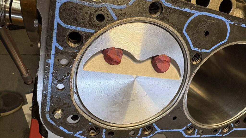 The pistons were set at .015″ below the deck