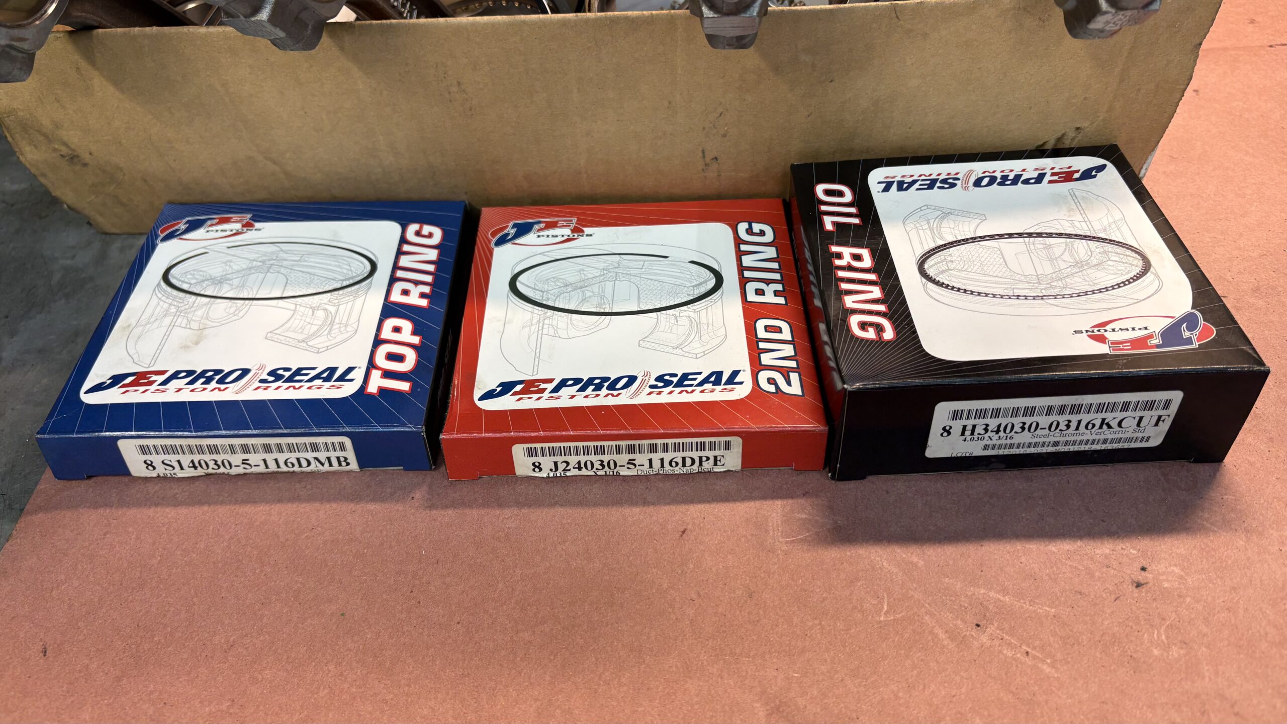 SCAT 3.75″ crankshaft, forged Icon pistons, 6.0″ long forged connecting rods, JE pistons rings